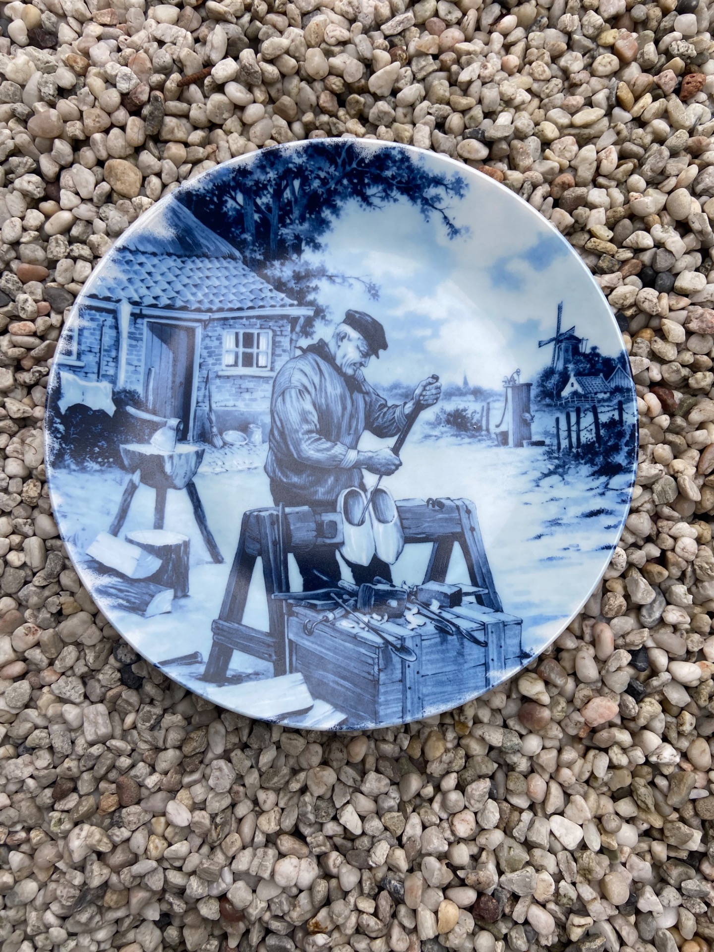 99240173. Blauw wandbord boer met klompen