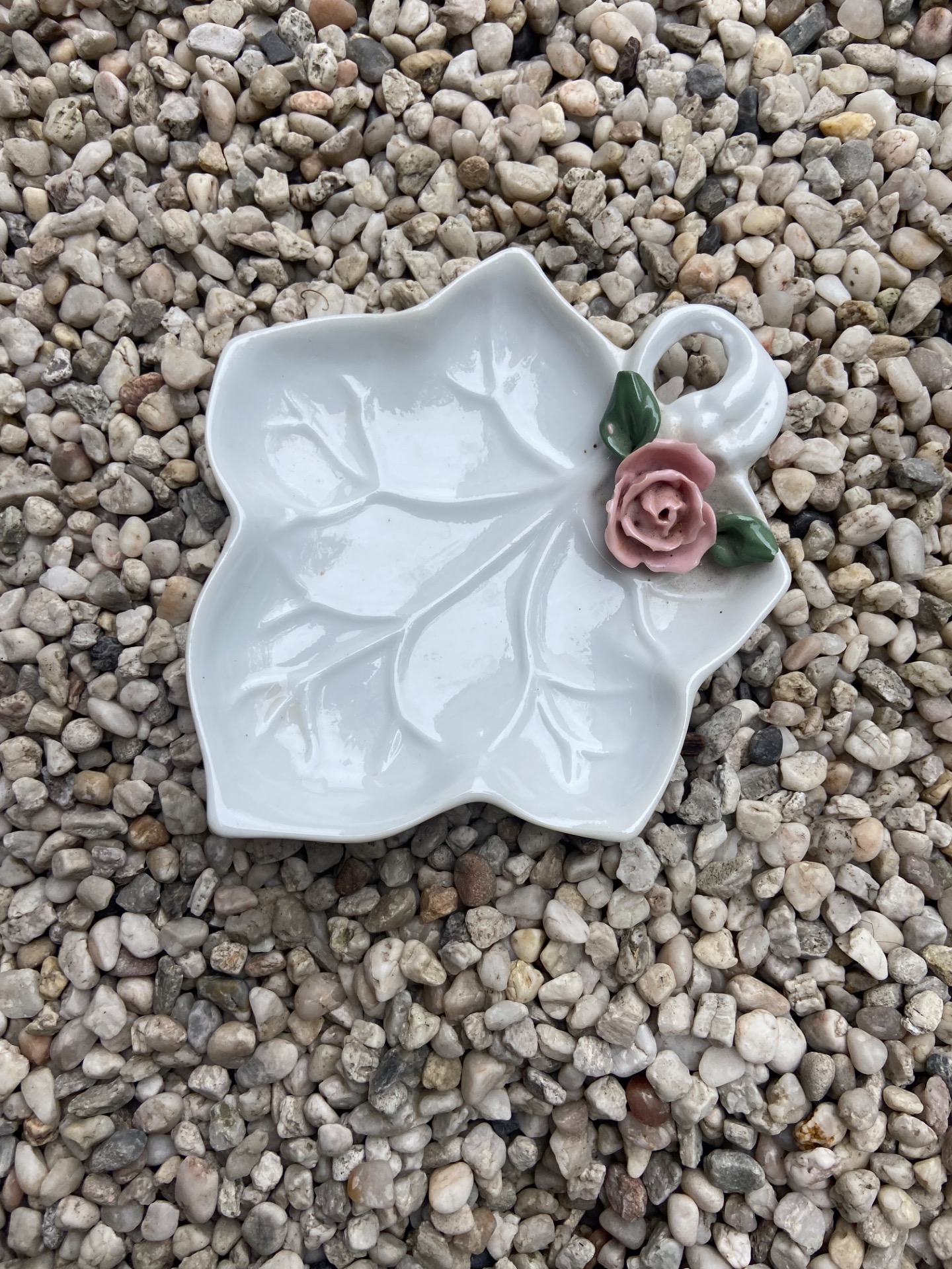 99240171. Porseleinen wit schaaltje in de vorm van blad met roosje